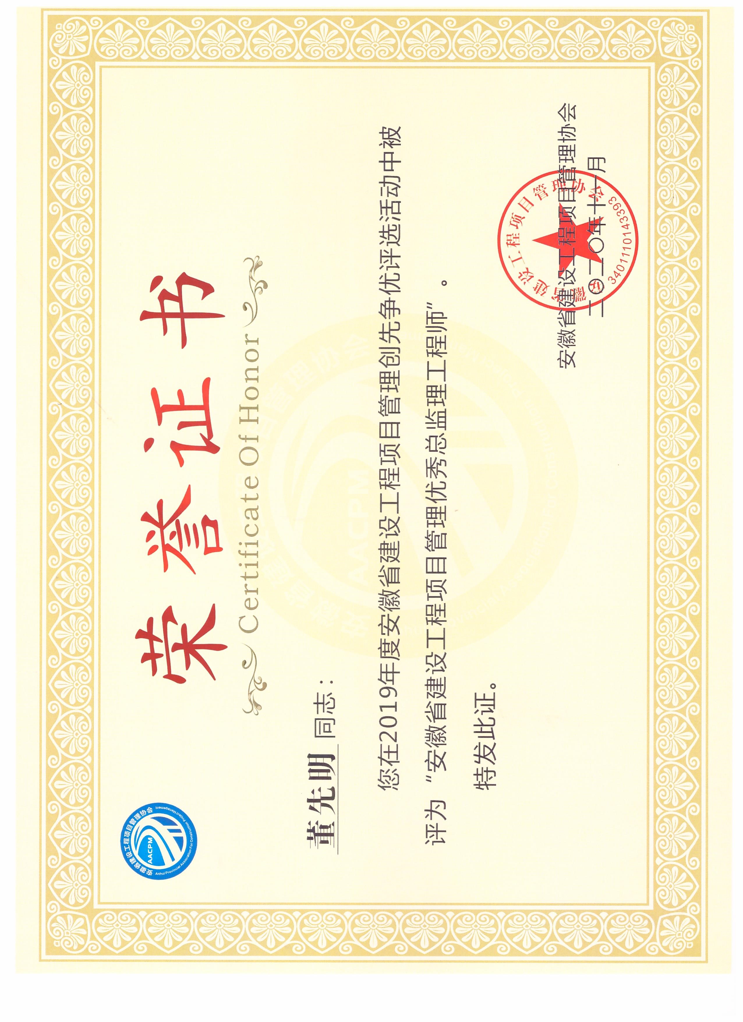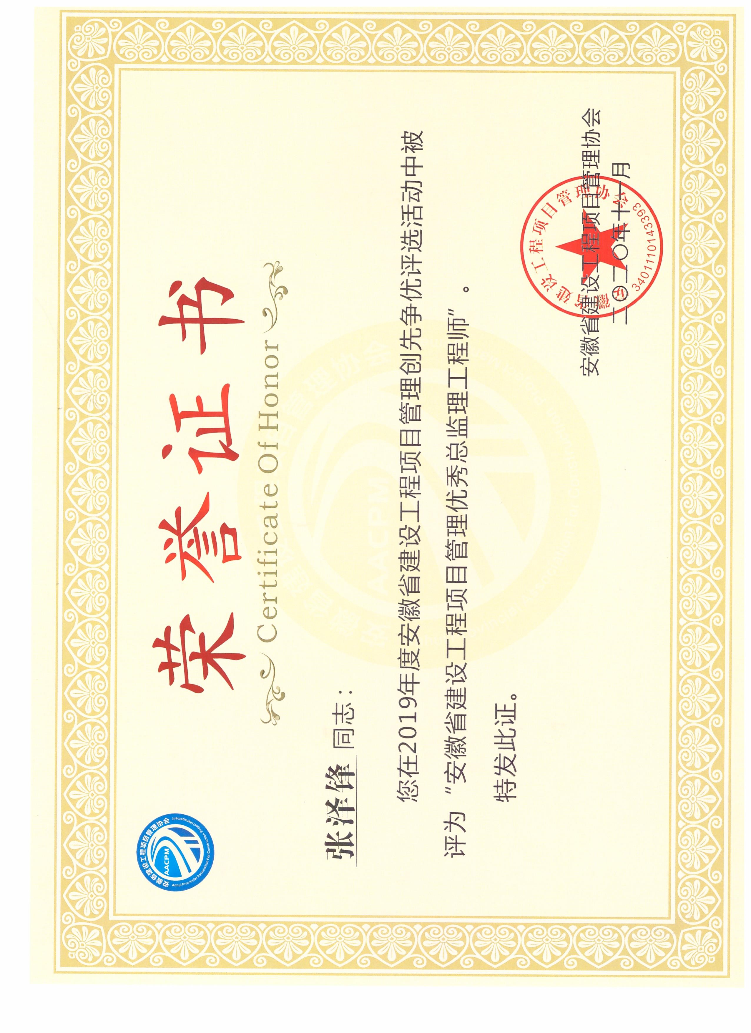 2019年度安徽省建設工程項目管理先進監(jiān)理企業(yè)