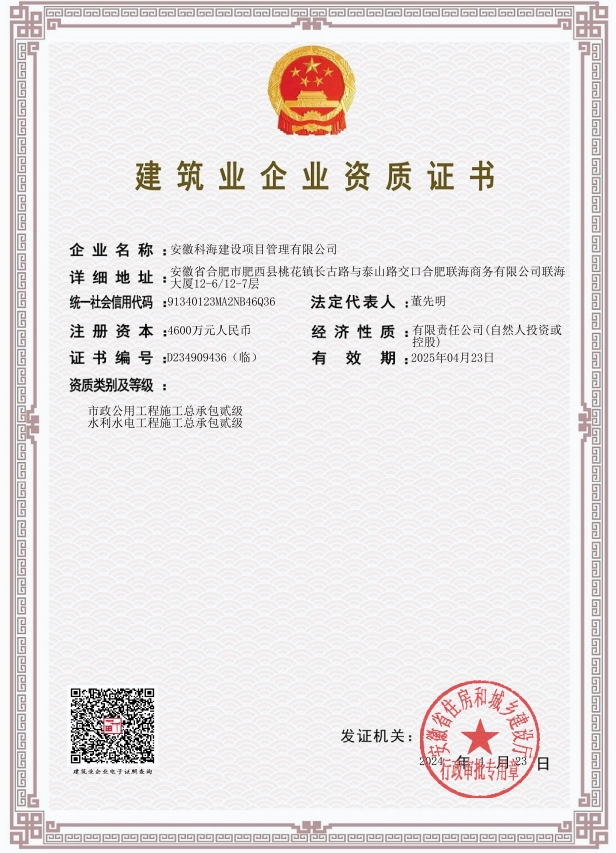 市政公用工程施工總承包貳級、水利水電工程施工總承包貳級