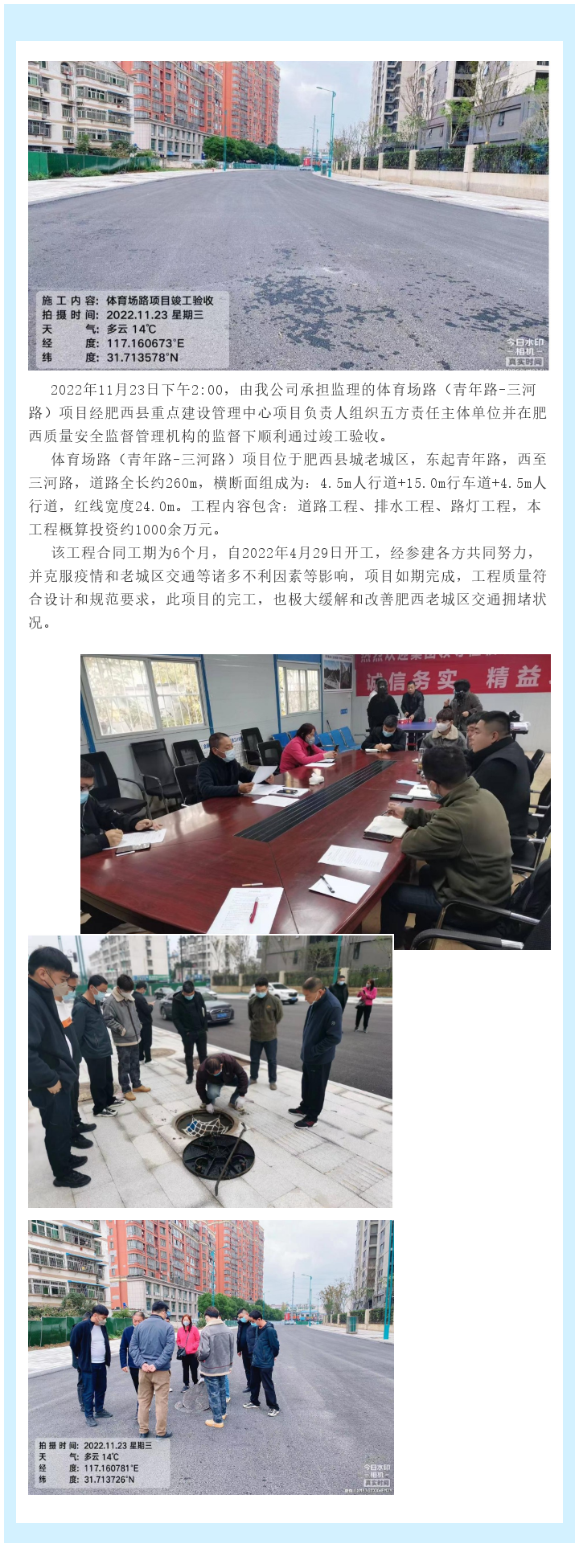 肥西體育場路(青年路-三河路)建設項目順利通過驗收