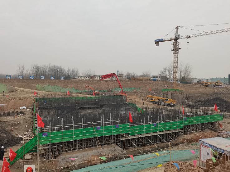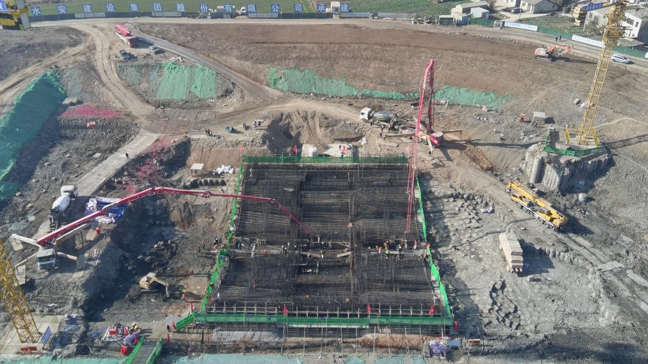 池州市升金湖泵站工程首倉大體積混凝土順利澆筑完成